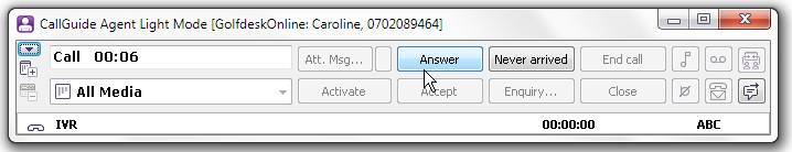Calls are answered by first clicking on the Answer button and then lifting the receiver. With a client setting you do not have to click on Answer manually. See Settings for Light Mode users.