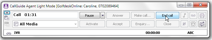 If the call has arrived via IVR VCC, and the customer hangs up, the call is terminated in ACE Agent as well, without your having to click on the End call button.