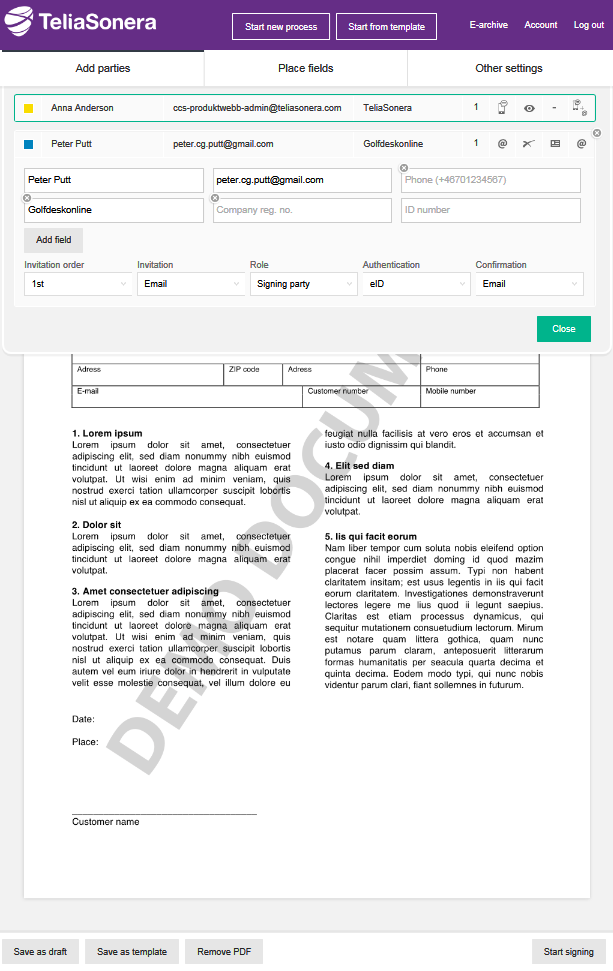 Fill in conditions for each respective party, in existing fields and/or the ones you create, such as: